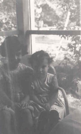 Here are two unfortunately unclear photos which seem to have been taken on the back screen porch that was one of the house's greatest features. On the left what looks like another birthday celebration....maybe mine? Being on the porch rather than outside would fit with the [possibly] cool weather of a February birthday.