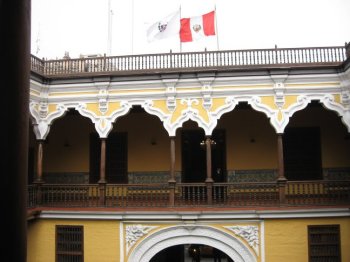 The most famous features of the palace are the gorgeous wooden balconies on the front wall. On the right you can see one of the balconies from the inside. The picture in the middle shows a view similar to that on the Peruvian 20-sol currency notes.