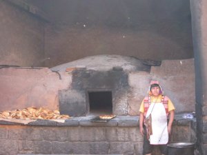 Here is an oven next to a Pisac restaurant that our guide told us was the oldest in the town (the oven, not the restaurant). We got to taste some of the empanadas being made there and they were delicious. Outside the restaurant was this guinea pig (known as "cuy" when on the menu) hotel.